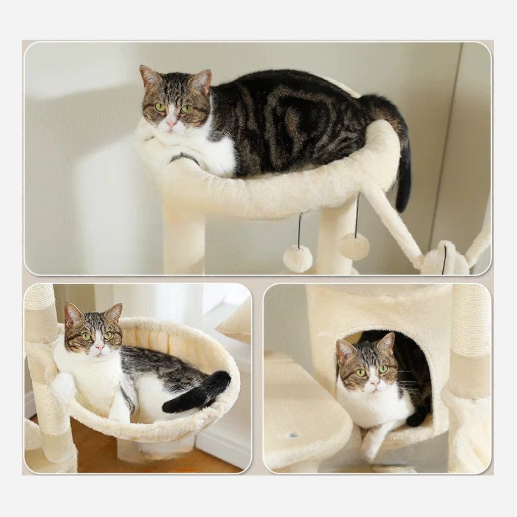 Entre hamac suspendu renforcé, jeux intégrés, poteaux en sisal épais et plateformes multiples, l’arbre devient un vrai complexe d’activités qui répond à tous les instincts naturels : grimper, observer, griffer, jouer et se reposer.
