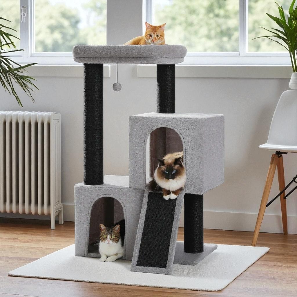 Grâce à une base extra-large et une structure en bois renforcé, cet arbre garantit une stabilité maximale, même pour les chats les plus lourds ou les plus actifs. Les poteaux en sisal naturel permettent à ton chat de faire ses griffes librement, sans jamais mettre en péril l’équilibre de l’arbre.