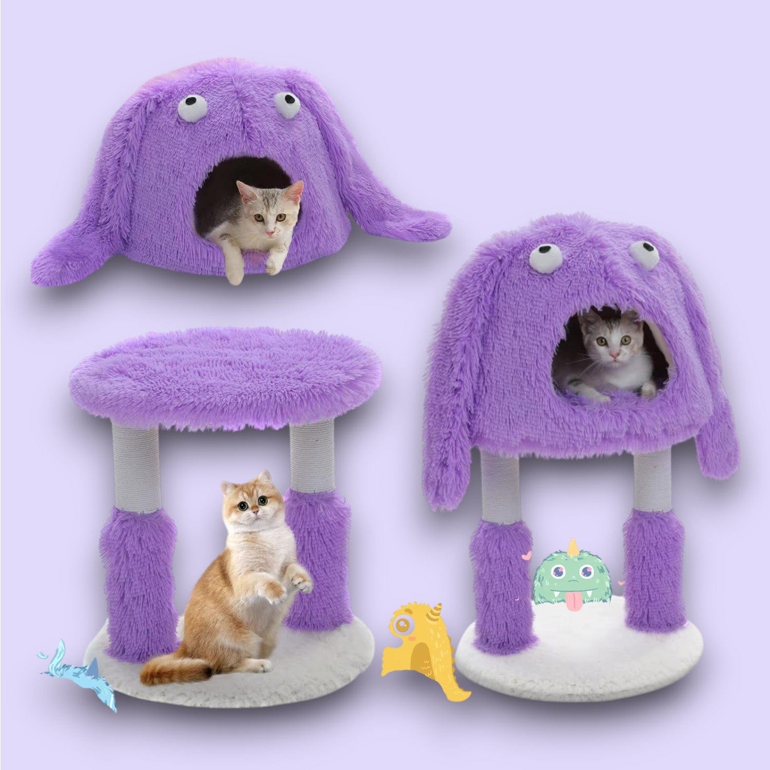 L’Arbre à chat Monstre Violet propose une plateforme supérieure douillette, une cachette intégrée dans le corps du monstre et un poteau griffoir en sisal naturel. Ton chat peut grimper, faire ses griffes, jouer ou se cacher selon ses envies, tout en profitant d’un maximum de confort.