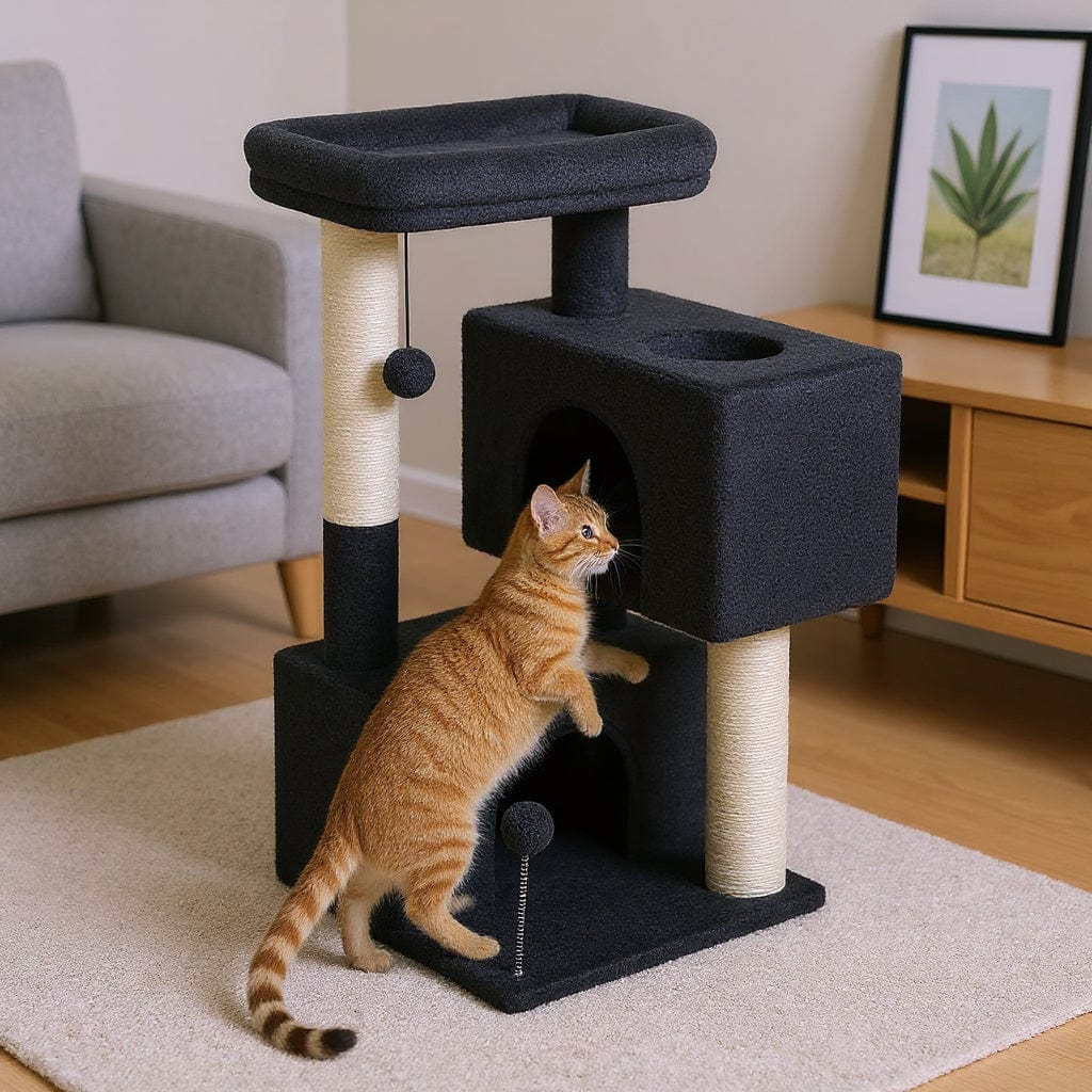 Ce modèle a été spécialement pensé pour les studios, appartements ou coins lecture, où chaque centimètre compte. Sa structure légère mais stable s’intègre discrètement dans ton espace de vie, tout en répondant aux besoins instinctifs de ton chat.