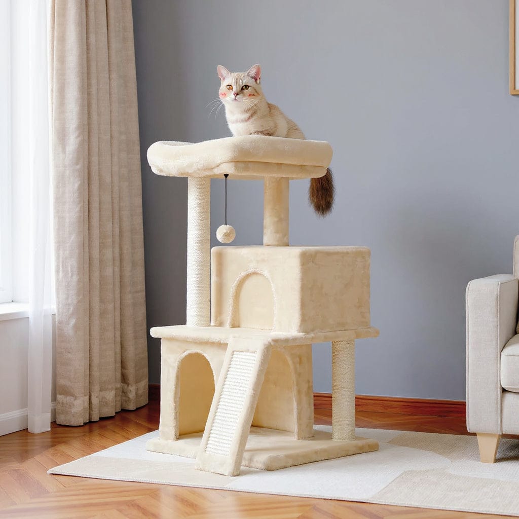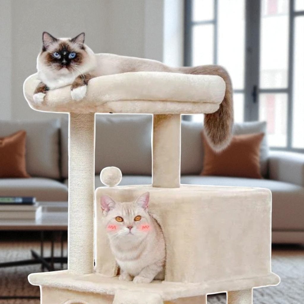 Idéal pour les petits espaces, ce modèle offre une zone de griffade en sisal naturel, une plateforme surélevée pour observer en hauteur, et une cachette fermée pour se reposer à l’abri des regards. Parfait pour les chatons, les petits gabarits ou les chats timides.