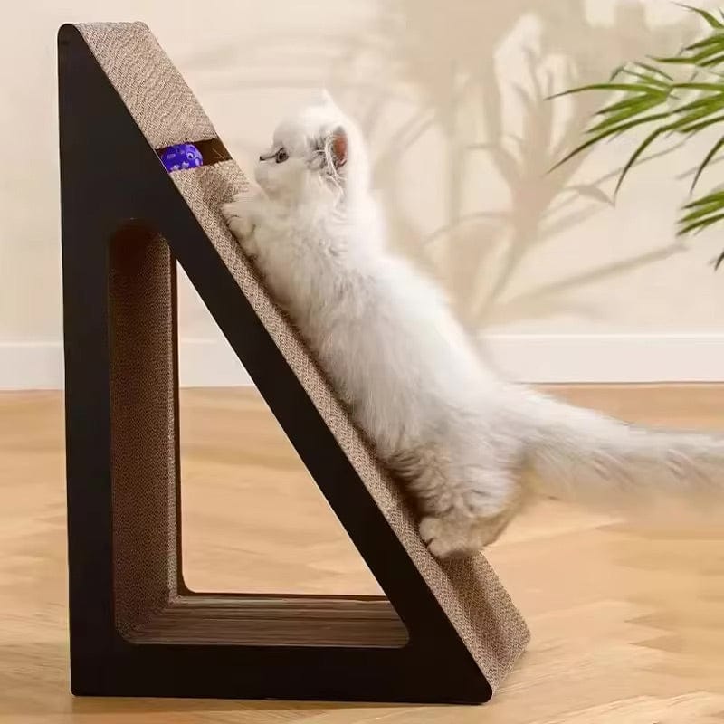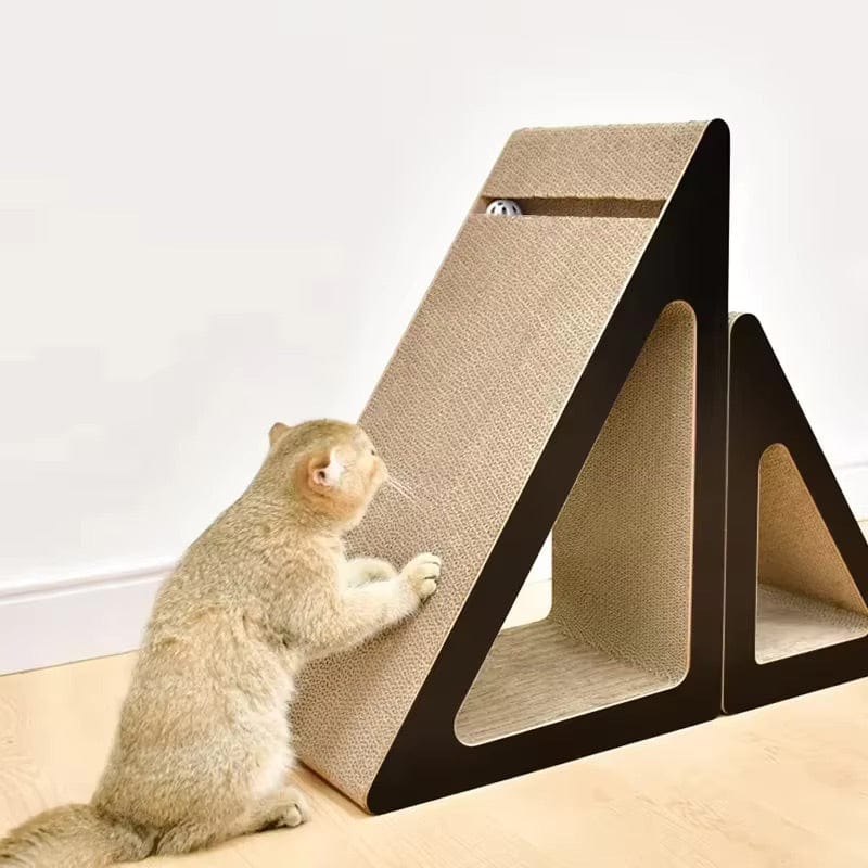 Votre chat s'ennuie et s'attaque à vos meubles ? Ce griffoir triangulaire révolutionnaire est la solution 3 en 1 qu'il vous fallait. La balle captive son attention et stimule son instinct de chasseur, tandis que la surface en carton ondulé satisfait son besoin irrépressible de faire ses griffes. La forme triangulaire ajoute une dimension ludique : votre félin peut grimper, se frotter et explorer sous tous les angles. Fabriqué en carton écologique résistant, il allie durabilité et respect de l'environnement. Offrez à votre chat un terrain de jeu complet qui protège votre intérieur : commandez maintenant !